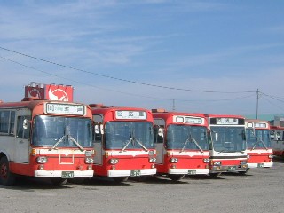 11月はじめの十和田観光電鉄 八戸営業所。ここは国際興業の車庫ですか?って!ビックリしちゃいましたねぇ。私が馴染みのある赤いバスが1台もいないんですから。青と緑だけ・・・なんか温かみがないですよね。同時に、寂しさも込み上げてきたりして・・・。こんな速いペースで置き換えが進んでいくなんて思ってもいませんでしたから。今残っているオリジナルカラー車だけでも、早いうちに押さえておかないといけませんね。バスの写真・十和田観光電鉄 八戸営業所