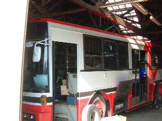 十和田湖から、迷ヶ平を経由して五戸にやってきました。まずは、この写真。左から2台目のバスから突っ込んでいきましょうか。523号車なのですが、最近塗り替えたみたいですね。とてもきれいに仕上がっています。ただ、ちょっと違和感を感じませんか?隣のバスと比べていただければ分かると思いますが、方向幕の周りまで赤く塗っちゃったんですねぇ。これだけでも、ちょっと重く見えちゃいますね・・・。続いて、右から2台目。元八戸市営の291号車です。当初は八戸に配属されていたと思いますが、いつの間にか五戸に来ていたんですね。これで、元八戸市営の車両は、各営業所に一台ずつですね。そして、一番右は、390号車。386号車は廃車になってしまいましたので、一番古い車両ということになるでしょうか?次の写真。塗り替え待ちの元小田急車が2台ありました。塗り替えが終わった車両は、順次窓枠を交換し、LEDを装備されているようですね。他にも五戸で写真を撮りましたが、まだ整理が付いていません・・・。まずは、秋田中央交通の五城目・男鹿を公開してから、南部バスに行きたいと思いますので、しばらくお待ちください。