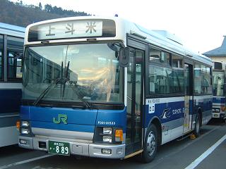 時にはJRバスのお話でも・・・。ということで、昨年11月に二戸で撮影した写真を出してみました。JRバスといえば、このような中折戸タイプが特徴といえるでしょうね。ただ、八戸で育った私としては見慣れないためか、違和感というか、一種の不安感みたいなものにとらわれるんですよね・・・。側面方向幕の位置も・・・慣れないんですよねぇ~。見た目がちょっと怖いなぁ・・・みたいな印象を受けちゃいます。ちょっと暗めのカラーでその雰囲気を増しているのかもしれませんが。一方でということで、こちら。おなじみのエルガミオ。こちらになると、いくらか安心感はあります。あくまでも、私が感じる印象ですけど。まぁ、八戸でも秋田でも良く見かけるエルガミオに対しての慣れというのもあるでしょうけど、他に、フロントの青色の割合なんかもイメージに関わってくるのかなぁなんて感じます。八戸に乗り入れていた、JRバスの路線も昨年廃止されてしまいましたし、秋田にもJRバスの秋田支店はありますが、そこには高速バスしかないですからねぇ・・・。ほんと、JRバスには疎いのが現状です・・・。