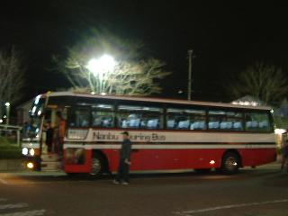 で、やってきたのは貸切のエアロバス。今日は専用車じゃなかったですね。一応、仮設の運賃箱みたいなのは設置されていました。