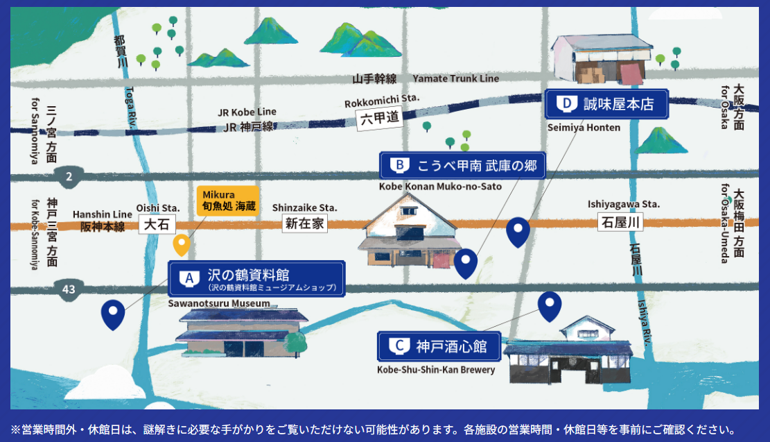 【イベント】灘の酒蔵謎解き探訪 2024の続きですhttps://nada-quiztour2024.com/#sakaguraよりルートの紹介大石駅→沢の鶴大石駅→新在家駅(ランチ:【ラーメン】らーめん専門いっぽし)新在家駅→こうべ甲南 武庫の郷→誠味屋本店→神戸酒心館→石屋川駅これで2エリア制覇、残りは神戸西エリアのみ沢の鶴こうべ甲南 武庫の郷神戸酒心館神戸酒心館ちなみに、謎解きの難易度は滅茶苦茶高いです(西宮編より数倍難しい)