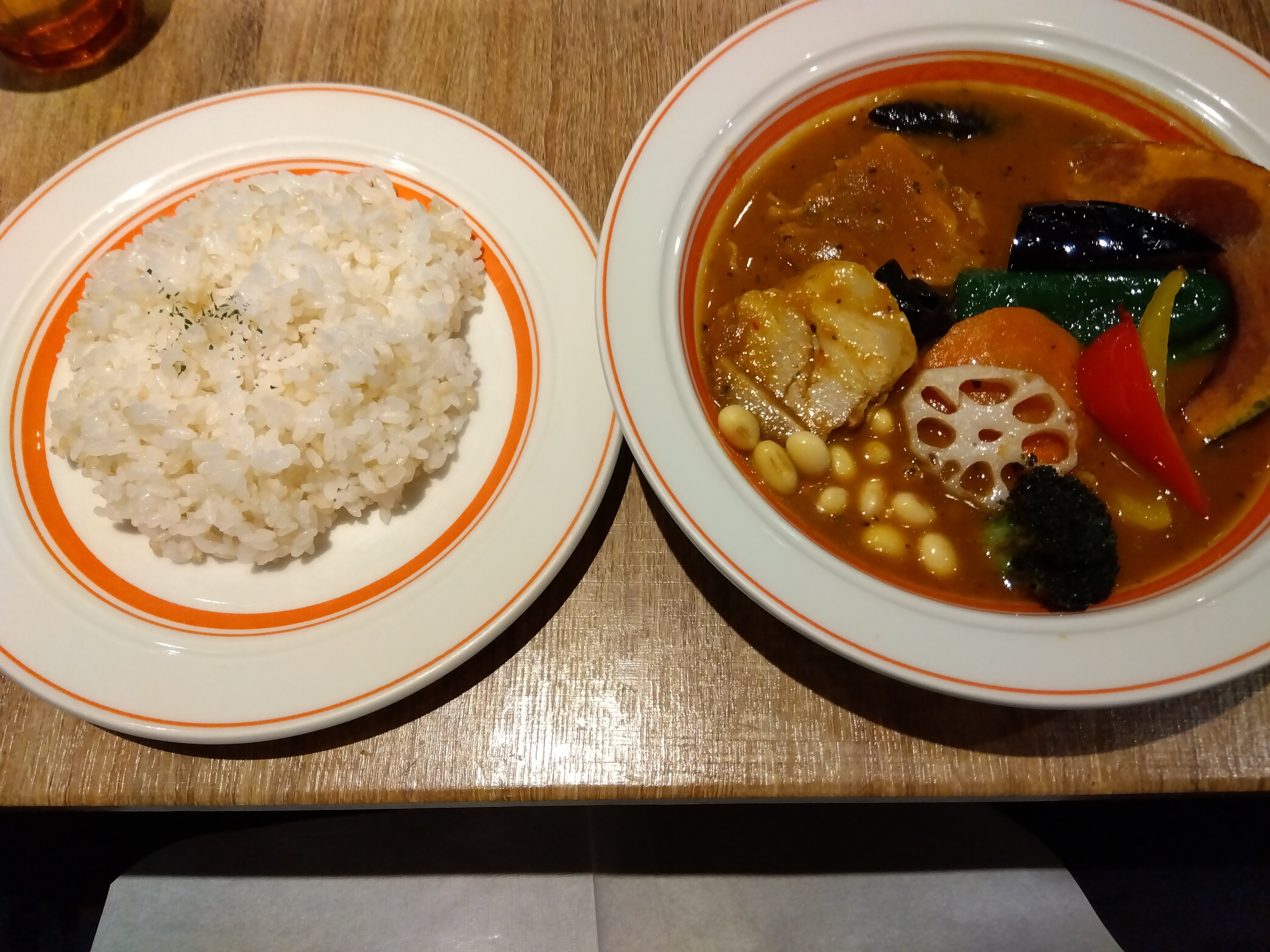 【お店情報】Rojiura Curry SAMURAI. 北広島店011-377-8066北海道北広島市大曲幸町3-7-6 三井アウトレットパーク 1Fhttps://tabelog.com/hokkaido/A0107/A010703/1052416/豚角煮のスープカレーをチョイス豚角煮と野菜 1,540円野菜12品目と、極厚角煮(2切)の満腹カレー!ほんのりだしが効いてる角煮を味わってみてください!角煮はオイリーなので、他のスープカレー頼んで、トッピングで角煮を追加する方が良いかもしれない(2個は多い)他が野菜重視でスープもトマト感が強く、ヘルシー志向他にも20種野菜のスープカレーもあり、良いものを食べられる満足感がある2辛を頼みましたが、少し辛め。自分の中では3辛までは行けるヘルシー志向を考えると2辛でちょうどよいけど、この辺のバランス感覚は好みSAMURAIは大阪のグランフロントにもあるので、時間を見て訪問予定Rojiura Curry SAMURAI. グランフロント大阪06-6371-0306大阪府大阪市北区大深町4-20 グランフロント大阪 南館 7Fhttps://tabelog.com/osaka/A2701/A270101/27118974/
