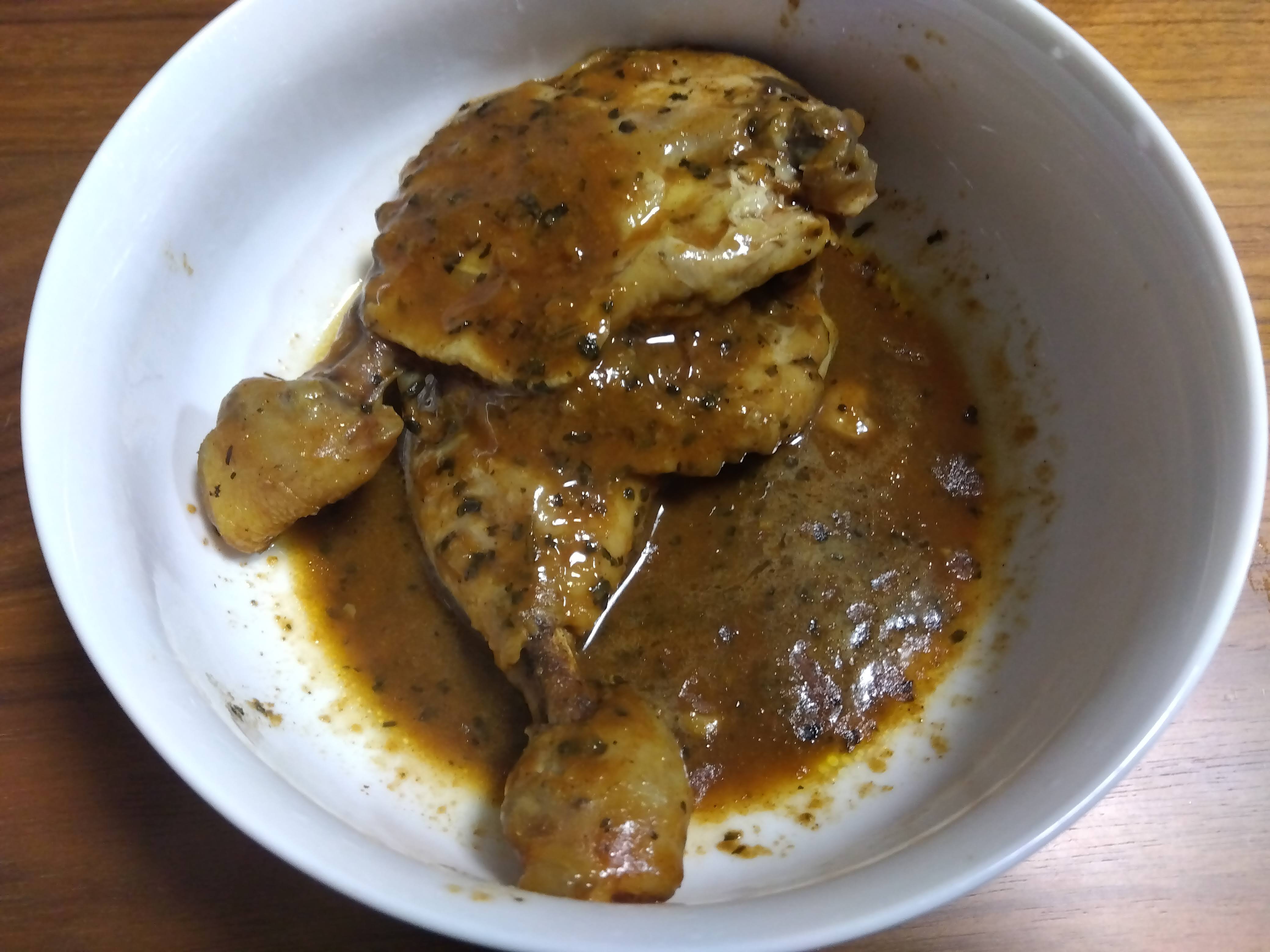 https://www.gyomusuper.jp/product/detail.php?go_id=6823骨付きの鶏もも肉をほろりとほぐれるほどやわらかく煮込みました。さまざまなスパイスを使用した特製カレーソースの豊かな香りが食欲をそそります。ぜひご飯やバケットと一緒にお楽しみください。レンジで500W 3分肉はほろほろ、スープカレー的なソースも美味しいスープカレーとして食べるには少しスープが足りない、かと言って加水するわけにもいかんしなぁ蒸し野菜と一緒に食べるのが美味しいごちそうさまでした