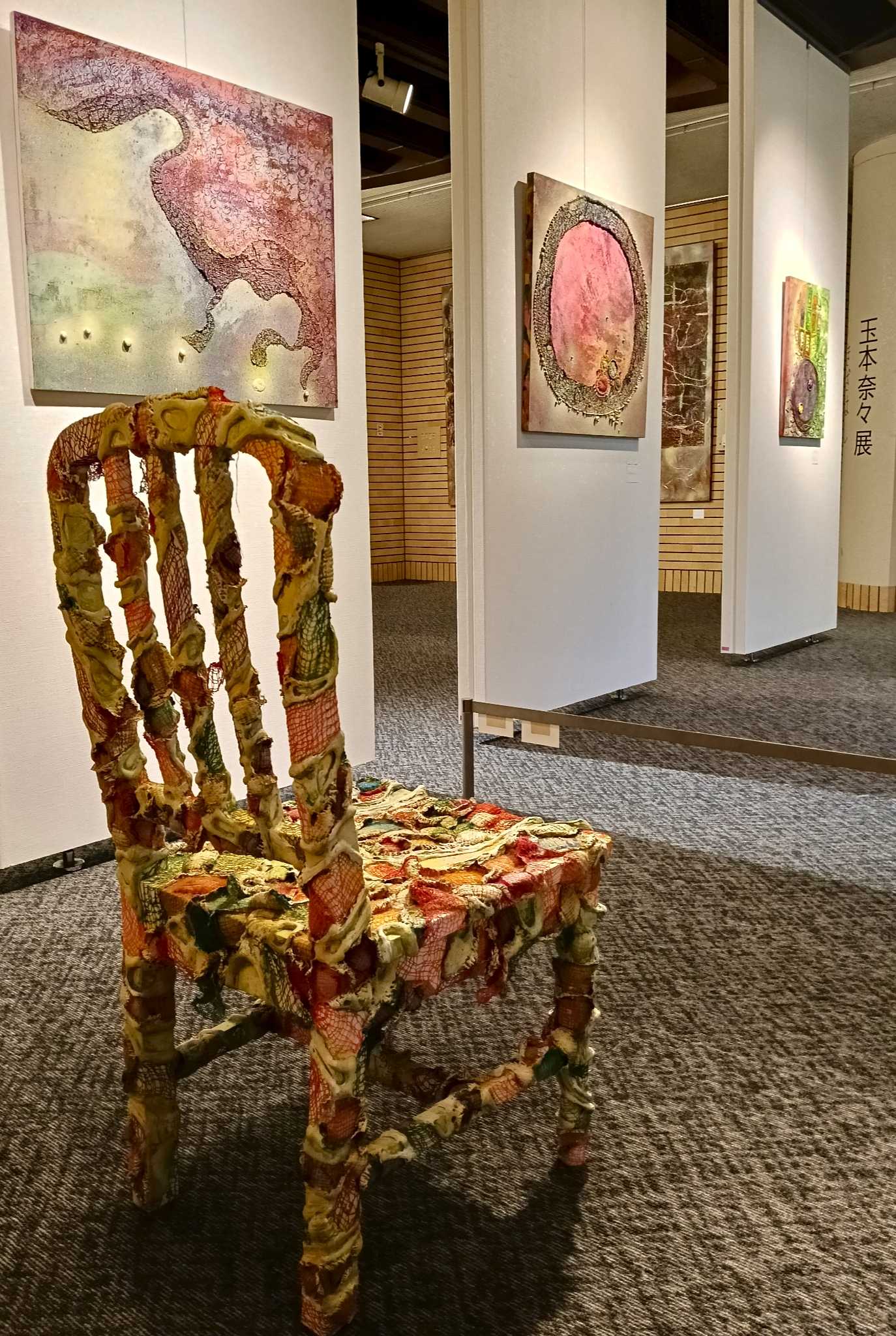 玉本奈々は、繊維造形物によるレリーフ状絵画と立体、インスタレーションで知られる気鋭の現代美術家/著者。ミシン糸が縫い込まれ、古木の樹皮か珊瑚のような質感のオブジェと化した布等塊と、飛沫状の着彩、樹脂による凸状波紋など、豊穣な物質的マチエールが特徴。近年では、色彩評価が高まる。ワークショップを随時開催。 《企画事業ならびに作品に関するお問い合わせ》 エヌティエム.イント ntm.int7@gmail.com