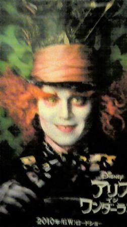 ゴールデンウィークに池袋で見た…アリスインワンダーランドジョニーデップが、何だかとっても、雰囲気があって楽しかったなぁ~それに、やっぱり3Dって凄いと思った。田舎にゃー3Dの映画館内から見れないだろうな~と思っていたら、山形村のアイシネマが、3Dやっているって…わぉ~この前は、日本語吹き替え版で見たので、是非、もいちど字幕版で見たいよ~…でも、明日も明後日もしっかりと仕事だよ~伊勢丹で、ジョニーデップのアリスの扮装で帽子かぶった姿のTシャツが売っていて、とってもかわいくて…買ったのはいいんだけど…おばさん50歳になるからちょっと恥ずかしくて、着られない……でも、最近寒いから、下に着て…上から、ジャケット来て仕事行っちゃお~