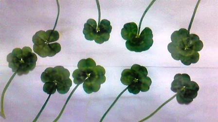 昨日、弟が入院したので、実家で飼っているダックスをこっちに連れてきた。もと8年ほど前に父が無くなり、寂しそうな母の為に、弟が買ってきたミニチュアダックスフントなのだ。しかし、もう、母も先月なくなったため、それまで入院中は私の家で飼っていたが、弟がサミシイと言うので実家に帰したものの…また、結局、こっちに来てしまった。ダックスは、私が多分一番大好きらしく。昨日迎えに行ったら…キュンキュン泣いて、スリ寄って来た。可愛いものである。母の入院中からずっとお風呂にも、散歩にも連れて行ってあげてなかったので、今日、ちょっと早く帰れたので散歩に連れて行った。そしたら、四つ葉のクローバーが8個もあった。それに、5つ葉のも1個…あるところにはまとまってあるもんだ。一番左の物が5つ葉です。後は、皆4つ葉のクローバーです。 なんだか、母が私に「頑張れ」と、言ってくれている気がして…なんだか涙が出てしまう。それから、お風呂に何カ月ぶりだろう(多分3カ月ぐらいですね。)入れてあげました。少しは犬臭さがとれました。