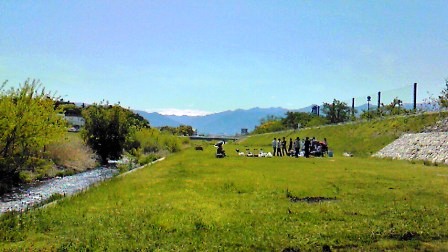 今日は、すがすがしい良い天気…紫外線が痛いですね。しっかり日焼け止めを塗って薄川の河川敷で、焼き肉大会をした。遠くに、乗鞍が見えます。 ココが白線流しで有名な、薄川です。焼き肉撮らなくて…玉ねぎいっぱいの焼きそば。 一番お好み焼きが美味しかったです。 太陽の光をしっかりと浴びて、楽しかったです。とても、のんびりできました。