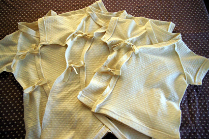 出産のこと、覚え書き。今回は3度目ということもあってか、超安産でした。最近は体重増加もあまり厳しく言わないんですね~最終的に10kg増えちゃったけど、二人目のときに臨月で一気に4kg増えたせいか、つっかかって痛い思いをしたので、今回は臨月だけは気をつけて、月2kgに抑えました。でも、ベビの体重は3560gねえねは3444g→チビ3595g産むのに苦労したチビと、ほとんど一緒(苦笑)私の中では、会陰マッサージが良かったんじゃないかなぁと。カレンデュラオイルでお風呂上りにマッサージするだけ。あとは、3度目にして、やっと呼吸法ができたこと(笑)いつも吸うんだか、吐くんだか、わけがわかんなくなっちゃって。今回の産院では、目の前のテレビに熱帯魚やイソギンチャクの映像を流していて。それで落ち着いた気がします。超ベテラン、総婦長さんの誘導にも助けてもらいました。おかげで会陰切開はせず、縫合もこすり傷程度ということで、数針ですみました。そうしたら、産後の楽なこと!ドーナツクッションは必要ないし、とことこ歩ける!今まで産後がつらかったのは、会陰の傷のせいだったのね~ちなみにアロマは、LDRににおいが残ってしまうということで、陣痛マッサージオイルは使えませんでした。というか、痛みに耐えるような陣痛は1時間くらいしかなかったので、マッサージする暇もなかった。オットに腰を押さえて~とお願いしたのも15分くらい。本当にあっという間でした。前日定期的な張りがあったので、診てもらって、そのまま一応入院していたので良かったけど、うちにいたら本気で間に合わなかったかも(汗)産後は分娩台から降りる前に、トコちゃんベルトを着用。以前はとにかくガードルでおなか周りを締めるのが中心だったけど、今はまず骨盤を戻すこと!だそう。おなか周りにサポーターをしてしまうと、内臓が降りて骨盤が締まらなくなってしまうです。なので、トコちゃんベルトのみ着用。産後2ヶ月、ずっとつけてました。おかげで出産前に履いていたGパンも履ける様になったし、体重も戻りました。この本の体操もがんばりました。そろそろ、ヨガを再開しようと思っています。 明日はお宮参り。ただいまセレモニードレス作成中。間に合うかしら(汗) 気になるリネン
