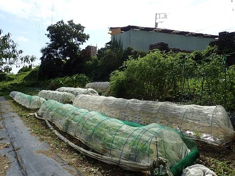 おはようございます。神奈川県”中高年ホームファーマー3年生”による今年度最後の実習レポートです!2019年9月1日は二百十日です。二十四節気の『立春』から数えて二百十日目に当たる日で、夏の高気圧が次第に勢力を弱めますが、海水温はまだまだ高いため、昔からこの時期は勢力が強い大型の台風が襲ってくることが多いとされ、過去にも何度となく強い台風が日本を襲っています。台風の発生数や上陸数ともに、8月についで9月が多くなっており、9月以降の台風は本州付近に停滞する秋雨前線を刺激して大雨になる事があるので注意が必要です。二百十日頃は、多くの地方では稲の開花期に当たるため、昔から農家の厄日として警戒されています。(お天気.comより)w(☆o◎)wガーン確かに、日にちこそ違いますが・・先日(8月28日)に九州北部(佐賀・福岡・長崎)を襲った記録的な豪雨被害がありました。九州北部豪雨で被害に遭われた地域の皆様に. 謹んでお見舞い 申し上げます。☆~のほほん農園~☆(仮:葉山野菜研究場) <第1のコース>:手前左下から第1弾キュウリ & ゴーヤ お片付け&つるなしインゲンお片付け<第2のコース>:手前左下から>秋キュウリ × 秋トマト <第3のコース>:手前左下からサツマイモ × 第2弾サツマイモ<第4のコース>:中央下からメロンお片付け & つるなしインゲンお片付け<第5のコース>:中央下からズッキーニお片付け地 × 秋冬ダイコン種まき地 <第6のコース>:左手奥下からピーマン × ナス(長ナス)&つるなしインゲン終了 <第7のコース>:左手奥下からカボチャお片付け地 × ニンジンお片づけ地 <第8のコース>:左手奥下2番目から第1弾長ネギ × 第2弾長ネギ × 第3弾サトイモ<第9のコース>:左手奥下からサトイモ × サトイモ☆~本日の作業内容~☆前回は、秋冬野菜のハクサイ&キャベツ苗の植え付け作業を行いましたが~さて、今回は?<マルチを張ろう~>⇒先日、耕運&畝たてまでしてもらった畝に・・今回はマルチを張りました!これで~すぐ次回は作業が進められそうです♪オッケー!(≧ω≦)b<ブロッコリー苗を植え付けよう>約1か月ほどの前に種まきしたブロッコリー。やっと植え付けられる草丈になったため、植え付けることに!!⇒前回、マルチを張っていたので~すぐさま、苗の植え付けができました。その後、コンパニオンプランツとして・・今回は、パクチー(セリ科)を選んでみましたよ♪( ̄ー ̄)bグッ!!乾燥しないよう~もみ殻を播いて・・防虫ネットをかけて作業終了です!!*なぜか?今回はネットをかけた後の写真を撮り忘れちゃったみたい(笑)☆~本日の収穫野菜~☆今日(二百十日)から10日後の二百二十日(にひゃくはつか)にかけては季節の変わり目となり、昔から暴風雨や台風が警戒されてきました。今後のお天気の変化には十分、注意したいですね。「頑張って、野菜つくれよっ」と応援していただける皆様、ランキングに参加しています。ポチっとクリックをおねがいします。いつも皆様の応援に感謝しております。毎日のブログ更新の励みとなっています人気ブログランキングにほんブログ村レシピブログのランキングに参加中♪ よろしければクリックしてくださいね♪