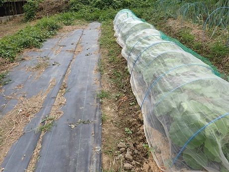 ピーマンお片付け地 ×  ハクサイ&キャベツ苗植え付け地