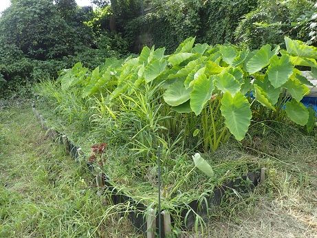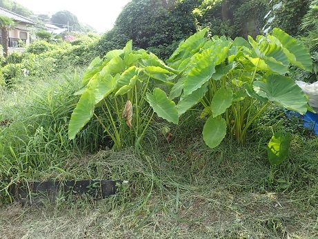 刈り取った草は、里芋の株元に乾燥防止のため、上に敷きました。