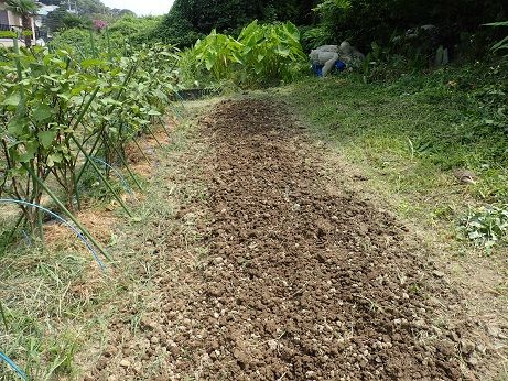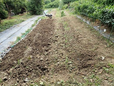 お片付け&マルチを外した畝 ​​​​​​​​​に、耕運機をかけてもらいましたよ~!!