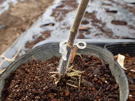 「仮支柱」として斜めにさし、ひもなどで誘引しました☆