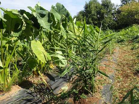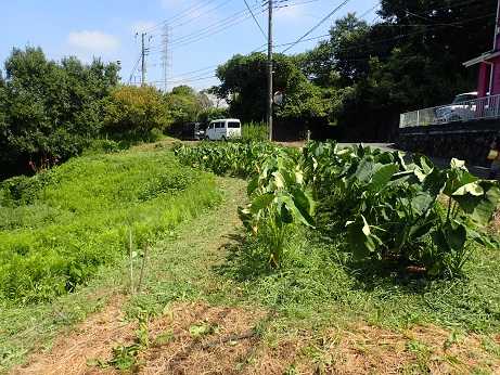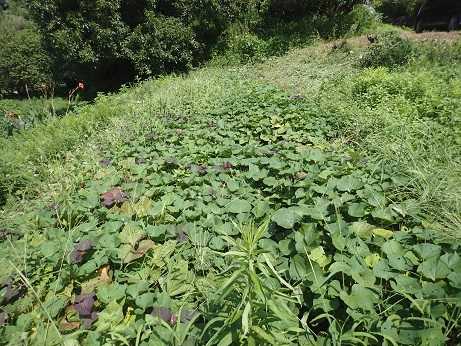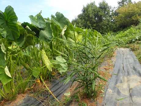 あっという間に、雑草で覆われてしまう、サトイモ&サツマイモ&ショウガたち。