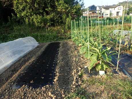 (エダマメお片付け地 × 第2弾白ナス苗植え付け地)