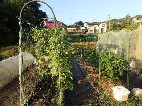 キュウリの支柱立て&ネット張りを行ったのは~ 5月上旬頃