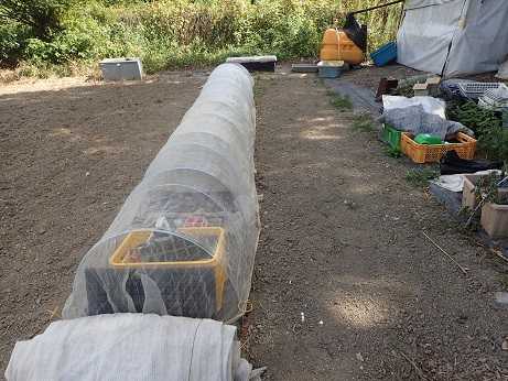 (秋冬苗の育苗地× 九条ネギ苗&テーブルポテト袋栽培お片付け地)