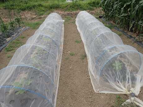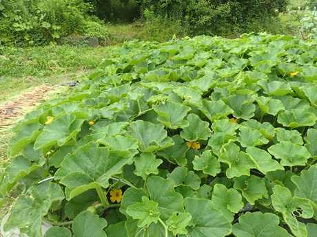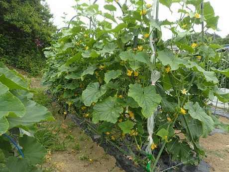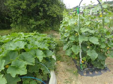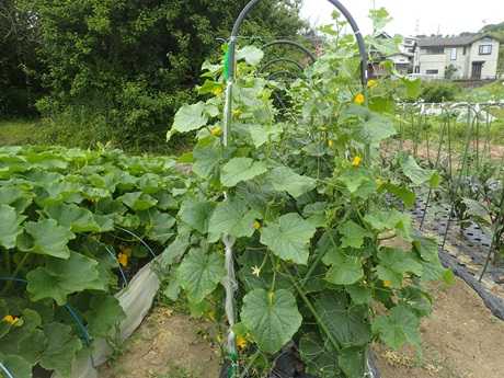 (第1弾カボチャ苗植え付け地 × 第2弾キュウリ苗植え付け地)