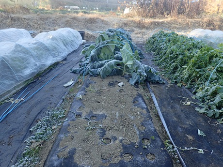 前回は、 ブロッコリー収穫&氷張る&畝立てマルチ張り などでしたが、今回は~?