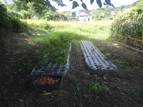 (トマトわき芽苗植え付け地 × 第2弾オクラ種まき地 )