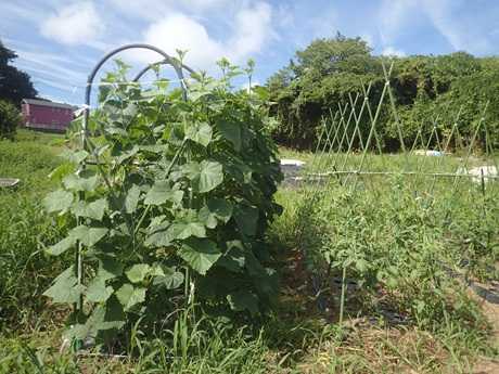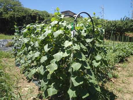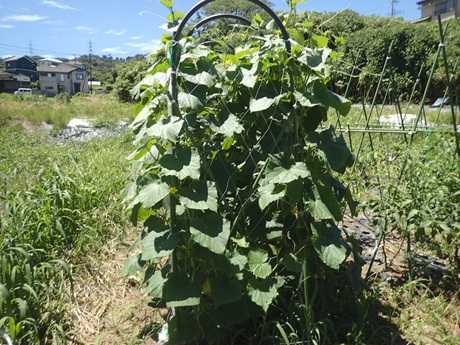 第2弾キュウリの支柱立て&1番果の収穫がスタートしたのは~ 7月初旬頃