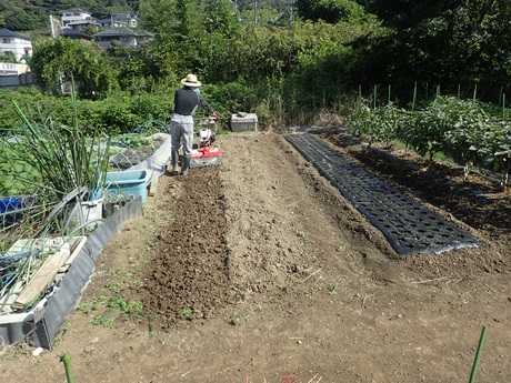 (秋冬ニンジン種まき地 × 秋採りキュウリ苗植え付け地)