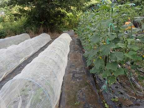 秋採りキュウリ苗の支柱立て&ネット張りを行ったのは~ 8月下旬頃