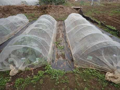 (秋冬野菜育苗地(ハクサイ、カリフラワー) × タマネギ種まき地)