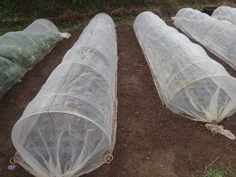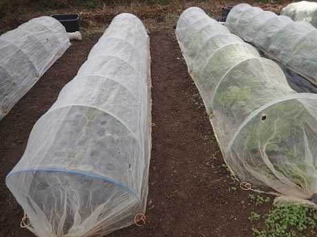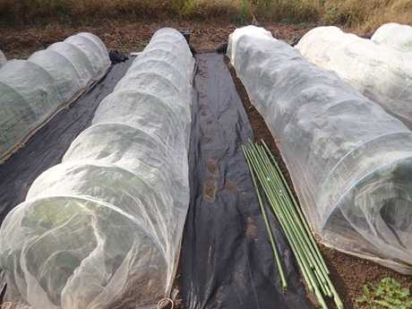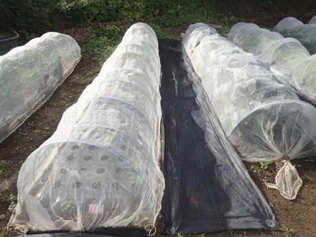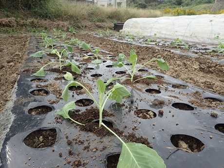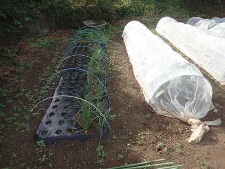 (にんにく球&タマネギ球植え付け地 × 第3弾カリフラワー苗植え付け地)