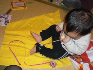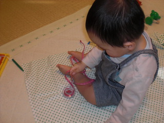 先日、そうちゃんの10か月健診(市でやってるヤツ)に行ってきました。歩いてるのはそうちゃんと、もう一人、お兄ちゃん・お姉ちゃんがいるお家の子。やっぱり兄弟いると早いのかな。そうちゃんはよそのお母さんの所へいって、なかなか私の所へは帰ってきてくれませんでした(^^ゞよそのお母さんが本を読んでるところへお邪魔したり、他の子が泣いたらそばに寄って行ったり。ペタパタ、よく歩いてました。開始30分前に行った甲斐あって、2番目をゲット。さっさと1時間ぐらいで終了しました。そうちゃんは歩きすぎて疲れて眠くなっちゃったけど、最後まで泣くことなく、自由奔放に歩きまわってました。測定も、診察も、「ぽ~~~」っと大人しくしてました。体重8700グラム。身長73.4センチ。このころのりょうちゃんと言えば…体重は10キロオーバー。身長は77センチ。・・・でかかったんだなぁ。そりゃ腱鞘炎にもなるよ。そうちゃんみてて、今は腱鞘炎再発なし。ホントよかった。うむ。健康で何より。8