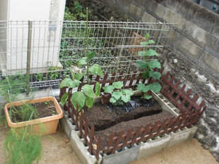 暑い。今日は、暑い。でも、さっき、畑をつくってきました~。ブロックで囲ってきただけなんですが…。しまってあった土をうんしょうんしょと運んで、汗だく(;´Д`A ```それもこれも、そうちゃんが寝ててくれないとできないしね。30分しないうちに一回起きて、もう一回寝かせたら、もうかれこれ一時間ちょい・・・。今はアイス片手にPC前にて休憩。今日はりょうちゃんも昼寝してます。う~~~~ん。静か~。子供たち起きたら、約束のアイス食べさせて、遅くなったけど、そうちゃんは行水。せっかくプールに水はったからね~。入ってもらわないと。さて。ダメになったキュウリの処分してきます。58円で苗買って、5本とれたから十分でしょ。やっぱりプランター栽培は難しいわ。できた畑にキュウリPart2が植わってます。今から日当たり悪くなるんで、どのくらい育ってくれるかわからないけど、頑張れ、キュウリちゃんっっ。