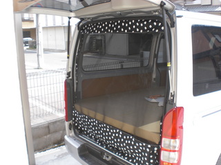 ハイエースの網戸作った残りでリアゲートの虫よけネットを作りました。網戸張り替え用の網が足りなかったので、上下左右、布を縫いつけました。結果、それがいい感じに…(布の柄はさておき…)磁石でくっつけました。百均でゴムっぽい磁石買ってきました。布のお陰でちゃんとくっついてます。リアゲートを半開きにした状態で使う予定。おっぴろげ~、は困りますし、泊まるところが道の駅ぐらいのところではマナー違反ですよね。===製作費===網戸張り替え用の網 確か327円…。布はこないだまで使ってた車用のカーテンなのでタダ。車に貼りつけるための磁石 630円。以上。はぃ。ウチは物好きなので作りましたが、ちゃんとしたのも売ってますよ~。■ ハイエース専門メーカー ユーアイビークル ■UI vehicle ユーアイビークル【 プロテクションネット 防虫ネット リアのみ 1面 】TOYOTA ハイエース 型式 200系≪ リアゲート部のみ 1面 ≫ぼちぼち色々作って楽しんでます。ポチッとお願いします。にほんブログ村