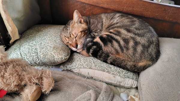 【ねこ】うたこ 丸座布団で寝る 2025年07月04日