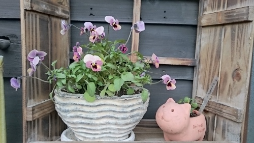 朝から庭仕事~w気になってたパーゴラの下も今は下のレンガを敷いた部分を増やして塀の所の鉢は据え置きで 他のは成長に合わせて移動塀の汚れが気になるし、此処にトレリス置こうか思案中今日はどちらかと云うと、片付け作業がメインでw八重のアネモネ綺麗こちらの花かんざしも植え替えました。あれえ元のはどうしっちゃったんだっけかwwお天気は思いっ切り曇より今宵は満月で木星とのシヨーも観れる筈なのにそんなには寒いと感じませんが。春は足音から囁きに変わってきた様で我が家の梅もポツンと開花w桜の開花予想も出た様ですね。薔薇達にも赤い新芽の気配が薬剤散布も済ませた私は完全に春待ち態勢でwカットした薔薇も未だ咲いてますクリスマスローズも気付けば蕾が此処にも何か芽が去年確か雪割草を植えたと思うんだけどなあ~だったら嬉しいこれってヴィオラの種いつも花ガラ片っ端から取るので見た事無かったw百均のアネモネも随分大きくなりましたこの時期のヴィオラは有り難いプリムラもねそうそう取り敢えず挿してみたww蝋梅 着いてくれると嬉しいなあこのブリキのハンギングポットや1枚目の木の出窓風のとかは 可愛い雑貨屋さん るく~るとっても感じの良いショップです ランキング参加中ですポチ逃げε=ε=ε=ε=ε=ε=┌( ̄ー ̄)┘(d ̄▽ ̄)オッケ♪にほんブログ村 ここから入ってブログタイトルクリックしてねえ~ヨロシク(゚0゚)(。_。)ペコッね