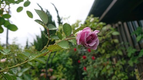 避難した軒下で咲いてた