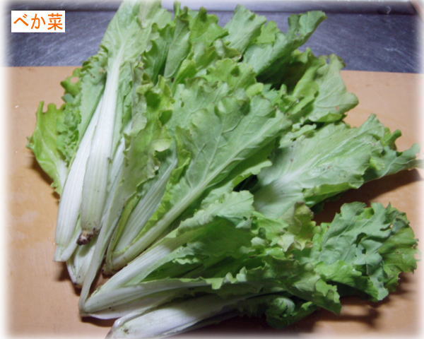 夕べお風呂あがりにシートタイプの鼻の毛穴パックをした。生乾きだとちゃんと取れないので、20分から30分位貼っていた。触ってみて、いい感じの硬さだったので一気にいこうと「ビッ!」っと剥がした。痛っー!剥がしたシートを見ると薄い皮らしきのが付いていた。鏡で鼻を見ると、上の方が赤くなってるー。今も少しヒリヒリします。一気に剥がすのは危険ですので皆さんもお気を付けください。昨日の日記のべか菜の画像です。参考の為、グリーンレタスも写しました。葉の形が似てると思いません?ちょっとこのレタスとは似てないかも・・・。今日、倉庫の入り口に遊びに来てた黒猫です。野生じみた顔をしています。野良猫かもしれません。