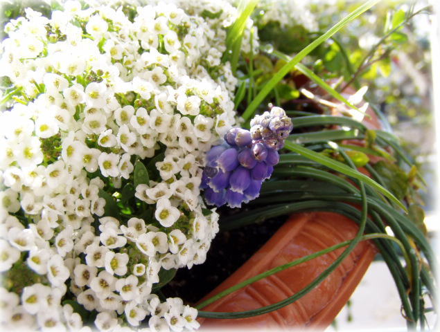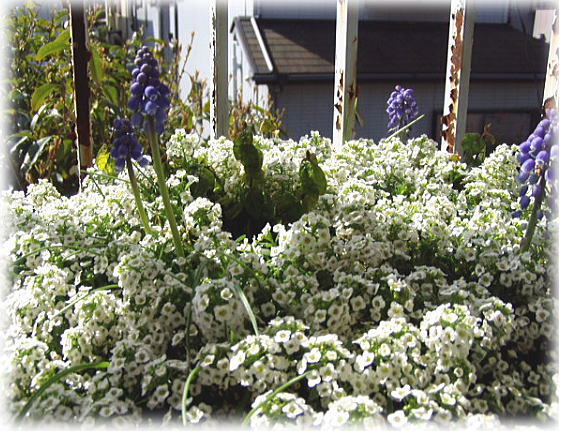 今日も暖かな天気♪こんな日は手作り弁当を持って公園に出掛けてのんびり過ごしたい。ん な~んて今の状態ではおあずけ状態です(泣)ムスカリがどんどん顔を出してきました。まるでデコレーションケーキにキャンドルが立っているかの様です。チューリップも葉がどんどん大きくなってきています。来月頃に咲いてくれるのかな?