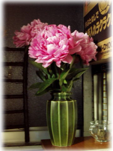 旦那がお客さんのお宅で貰ってきた芍薬の花です。花びらが多くてとっても綺麗ですね。貴婦人の様ないい匂いがします。