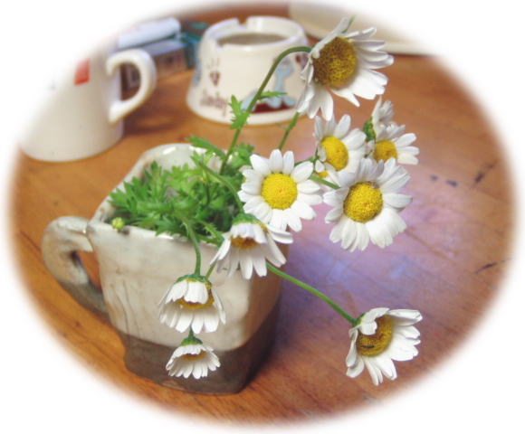 今日は1日中風がすごかったですね日中は掃除をしてました。なかなか出来なかった換気扇を綺麗にしてすっきりキッチン周りの上から下まで拭き掃除をして気持ちもすっきりしました。旦那の友達が作った手焼きのカップにマーガレットをさしてみました。ナチュラルでいい感じ。昼にキムチ味讃岐うどんを作って食べました。お義母さんが野菜直売店から買ってきてくれた、水菜、べか菜(?)、それから豚肉を入れました。チョー美味かったー腹♪湯気でいいかんじになってます。べか菜って初めて聞いたんだけど、形と色はグリーンレタスみたいなんだけど、生だと歯ごたえがあるので湯でたり、炒めたりして火を通して食べるみたいです。名前聞き違いかな。知ってる人いる~?
