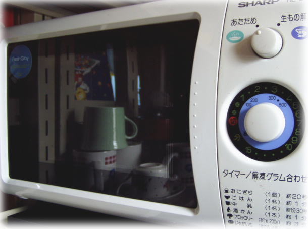 昨日出掛けていて急遽、仕事場の倉庫用の電子レンジを購入しました。倉庫にあったら便利だなと思っていただけで、自分達(夫婦)だけなので別にいいかなと買わずにいたんだけど・・・今日の夜、旦那の仕事関係の方が来る事になっていて、帰るのが遅くなるのでカレーを作っておいて家へ帰ったら食べる(私) → Aさん(今日来る方)もカレー食べるんじゃね?(旦那) → 冷たいカレーは美味しくないから電子レンジがないと(私) → 中古で安いの売ってるから買うか?(旦那) という事でリサイクルショップで2000年製の電子レンジをお安く購入できました。前からお弁当を持って行って冷たいまま食べていたので、これで温かなお弁当が食べられる♪人が来るので今からなんだか忙しないです。