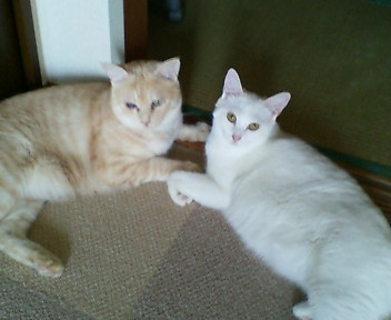 ごぶさたニャー!!!ネコのみなさん、こんばんわ!私のなまえは「ぷく」っていいます。しばらくブログをお休みしている間、いろんなことがありました。るみこの重大な真実、いちの居なくなった駐車場のその後、野良猫さんにごはんをあげているおばさんとの対立などなど。。。どれもこれも、びっくり!!なことだらけでした。。。そんな中、嬉しかったのことは、「いち」ことマロンちゃんに再び会いに行くことが出来たことです*^^*あーちゃんさんのおうちでマロンは幸せに暮らしてます。もう寒いお外で身を縮めながら蹲っていることもないのです。あーちゃんさん、最初はいちも慣れなくて大変な思いをされたのですが、とても根気強くいちのことを見守ってくださいました。あーちゃんさん、ありがとう。。。再びいちに会いに行くことによって元気になった私だったのに。。。それなのに。。。「突発性難聴」という病気になりました。実はこの病気、今回が初めてではありません。数年前に、左耳があまり聞こえなくなったことがあります。私は電話をするとき、左耳に受話器をあてます。仕事のときも、左耳で電話の相手と話をしてます。最初、電話の相手の声がとても不機嫌なように思いました。そのうち、電話の相手全員が不機嫌な声に聞こえることに気が付きました。私は「会社の電話、壊れてる」って思いました。他の人に「事務所の電話、壊れてるよ」って言おうと思ったある日、偶然反対側の耳で受話器の声を聞きました。普通でした。私の耳が壊れていたのです。そのときは「耳かきで鼓膜を傷つけたかなー」と思いました。まぁ、どちらにしろ耳が聞こえないのはイヤなので、仕事が詰まっていない日に耳鼻科へ行きました。耳鼻科の豆ダヌキのような先生はこう言いました。「検査の結果、鼓膜はとてもきれいです」私は嬉しくなってニッコリしながら「じゃあ良かったです!」と答えました。鼓膜の手術しなくて済むな~と思い、窓の外を見て「今日は良い天気だ!」などと思いながら、呑気に豆ダヌキの話を聞いていました。「耳が聞こえづらくなったのはいつから?」と聞かれたので「多分10日位前だと思います」と答えました。ニコニコしながら答える私に、豆ダヌキは神妙な顔をして「笑ってる場合ではないんです。あなたはちょっとやっかいな病気になってしまったようです。突発性難聴と言って、原因不明の病気なんです。主にストレス等が原因と言われていますが、治療方法は入院して安静にしながら点滴をするのがいいと思います」は?????????その頃の私はまさに健康そのもの。今も健康ですが。。。多少のストレスはあったものの、みんなも感じているぐらいの普通レベル。入院???点滴???私は「この豆ダヌキ、何言ってるんだろう。」と思いました。早く仕事に行かなくちゃと思ってる私に、豆ダヌキはさらに追い討ちをかけました。「これから点滴をしますから、時間は大体3、40分かかります」こういうふうに決定的に言われると「いや、仕事に戻ります」とも言えなくて、渋々会社にもう少し時間がかかりそうなことを連絡しました。まぁ、耳が聞こえなくなるのもイヤだし。仕方ないか、と思いおとなしく点滴を受けることに。。。点滴が終わり、豆ダヌキは「入院は出来ませんか?」と聞いてきたので「絶対に無理です」と答えました。その後、ひどい耳鳴り、立っていられないほどの眩暈を体験することが出来ました。それで、通院、点滴を繰り返し、なんとか通常レベルまで左耳が聞こえるようになりました。それなのに。。。今度は右耳です。右耳は気付くのが遅かったので、回復するか分かりません。この病気、激しい運動は禁止なんです><ビリーズブートキャンプ、出来ないじゃないかーーー!!!ビリーはかなり真面目に数ヶ月続けてます。体重は4キロほど減りました。体脂肪は6パーセント減りました。あ、私はダイエットをしてるわけじゃないんです。(←ウソ。かなりダイエットしてる)戦う身体を手に入れたいのです。自分の身は自分で守りたい。。。ネコたちのために長生きしたい。。。来年の夏にはシェリーみたくなりたいのにーーー!!!(←無理><耳が聞こえないのはイヤだな。。。ふく&メイ:ピース(平和)
