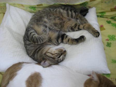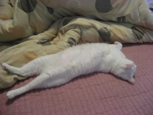 うーっ。寒いよーっ。毎日毛虫の散歩が辛いっス><みいちゃん(♂)1匹だけのときの休日は何も用事が無ければ夕方まで寝ていることもしばしば^^;でも今はそんなこと夢のまた夢です。あぁ、あの頃が懐かしい。。。みいちゃん(19歳♂)。私が毎朝起きて一番最初にすることは毛虫の散歩です。そのついでにお外の猫たちの餌皿も回収します。毛虫の散歩から帰ってくると家の中では猫たちが大騒ぎ☆キョロの部屋からはごはんを催促するチョコの声がするし、最近はくるちゃんも居るので「ミャーミャー!」と言う可愛らしい声も聞こえるようになりました^^;キョロの部屋以外で過ごしている4匹はウンチがしたいのかなんなのか、狭い居間を所狭しと走り回っています。毛虫も「ごはん!ごはん!」とうるさいです。時間帯が早朝なので1秒でも早くこの状況をおさめなければなりません。うちは集合住宅なのでまわりに迷惑がかかってしまいます。毛虫の散歩から帰ってきてまずとりかかるのはキョロの部屋の住人(住猫)たちのお世話です。ハナちゃんとくるちゃんはそれぞれお薬を飲ませなければならないので、お薬入りのごはんを用意して、猫たちのトイレ掃除をしながらハナちゃんとくるちゃんがお薬入りのごはんをきちんと食べたかどうか確認します。ちなみにキョロの部屋には猫トイレが5個あるのでそれらを全部掃除するだけでも大変です。。みんなそれぞれこだわりがあるようで、例えばハナちゃんはハナちゃん専用のトイレ、キョロはキョロ専用のトイレ、プチまろ専用のトイレ、と決まっています。チョコはケージ生活なので専用トイレなのは仕方ないとしても、他の猫たちは同じトイレを使ってくれれば楽なのになぁと思いますがどうやら同じトイレを使うのはイヤみたいです。プチまろコンビは男の子同士ですがとっても仲良し。いつもこうして一緒に寝ています。それから一番気難しいキョロにごはんを食べさせます。キョロ、たくさん猫を保護してしまってごめんね。。。キョロはストレスがたまると口内炎がひどくなって食事をとらなくなってしまうので、毎日手を変え品を変え、キョロがごはんを食べるまで何種類かのフードを与えます。キョロがごはんを食べてくれたら今度は居間チームのお世話です。ふくは洗面台の蛇口から水を飲むのが日課なので水を細く出してふくに水を飲ませ、その間に毛虫にごはんをあげます。ふくはキャットタワーの上で日向ぼっこするのがお気に入り。毛虫がごはんを食べている間に猫たちのごはんやお水を取り換えたり、猫トイレの掃除をします。それが終わるとやっと一息です。猫10匹。猫まみれ。猫のお世話も犬のお世話も大変です。いい加減なことをしたくないから、私の勝手でここまで頭数を増やしてしまったから尚更みんなが快適に過ごせるよう、健康でいられるよう、いつもそればかりを考えています。これだけ多いと動物病院に通う回数も半端じゃありません。まぁでもこれは頭数が多い少ないの問題じゃなくて、例え1匹でも犬猫と一緒に暮らすということは大変だということです。ただ可愛いだけじゃない。ウンチはクサイしオシッコもする。言葉が通じないのだからお互い理解出来ないこともあるし全てが人間の思い通りになると思ったら大間違い!こうやって書くと「えー!そんなに大変大変て言うなら犬も猫も飼いたくない。」って思う人も居るかな。そう思う人は飼わないでください。犬も猫も10年以上生きます。犬にも猫にも感情があって人間はそれを理解しようと努力しなければなりません。毎日毎日大変、でも犬が私に満面の笑顔を見せてくれる、猫たちは気が付けば私のそばに居てゴロゴロと喉を鳴らしうっとりとした表情で私を見つめて癒してくれる、犬が笑ってる、猫がお腹を見せてお昼寝している、私はその時がその光景が本当に幸せでその瞬間があるから大変だけど大切に育てようと思えます。今年も猫まみれ、大変だけど幸せ、みんな元気、大丈夫。メイはこたつの中で太り中。るみこは押し入れの中でくつろぎ中。ハナちゃんはファンヒーターの前を独占中。チョコは私の膝を独占中。そうそう、チョコは体重が6.2キロもあります。大きくて重たいです^^;~ランキング参加中~にほんブログ村