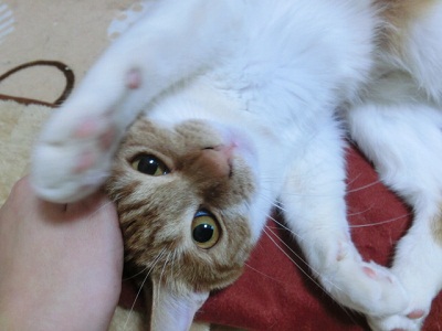 みなさま、おはようございますこんにちはこんばんは。今週末はまたもやひどい寒波がやってくるそうですが、みなさまいかがお過ごしですか?どうぞ暖かくしてお過ごしくださいね。今日はチョコの目の上の手術でした、が、その前にちょっと嬉しいお話し!ハッピーちゃん(鈴)の里親様が職場近くの野良猫を拾ったそうです☆その猫ちゃんはそのままハッピーちゃんの里親様のお家の子になりました!!あぁ、ステキング(←素敵なKINGってこと)。「今度ハッピーちゃんと新しい猫ちゃんにも会いに来てくださいね」などなど、社交辞令とは思えないこれまたステキング(←素敵なKINGってこと)なメールを頂戴したので、近々お邪魔したいと思っておりまっす♪また1匹、命が救われたと思うと限りなく嬉しいです☆さて。先にも書きましたが今日はチョコの目の上の手術の日でした。先日チョコの目の上の腫れものを切り取って病理検査に出したのですが、結果はいまいちはっきりしません。。。「一応良性」ということでしたが、どちらにしろ目の上が腫れて怪談の「お岩さん」みたくなっちゃって、このままにしておいたら掻いては瘡蓋になり、そこを掻いて瘡蓋がはがれてまた出血。。の繰り返しになるので腫れものをとってしまうことになりました。腫れものは柔らかいものじゃなく、コリコリと固いものでした。感触で言ったら鳥の軟骨みたいな感じ。瞼のすぐ裏側までしっかりと固くなっていたらしく、瞳のぎりぎりまでその塊をとってもらったのですが、手術でとった塊をもう一度病理検査に出してもらうことになりました。病院の先生も塊の全体部分の病理検査をもう一度したいと。(再度の病理検査の費用はかかりませんでした)今日手術したばかりなので結果はまた後日になりますが、何が原因なのか分かるといいなと思います。目の上の手術なので縫合した箇所を掻きむしらないようにカラーを借りてきましたが、嫌がってダメだったので今のところカラーはしてません。カラーをしてないほうが普通にしているようです。食欲もうんちもおしっこも大丈夫。チョコくん、良くがんばりました!今日の最後は久々登場のくぅ。くぅの写真は大抵こんな感じで伏せていたり寝て居ることが多いのですが、それはなぜか?元気が無いわけじゃないのですよ。。。カメラを向けると突進してくるのでこんなにブレブレの写真になってしまうのです^^;~ランキング参加中~にほんブログ村~☆我が家の『幸せになり隊』が優しいご家族を待っています☆~『幸せになり隊』メンバーへのお問い合わせはこちらまで!nekoneko7123@yahoo.co.jpバナー製作☆(ひこさん、ありがとう☆)