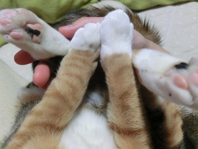 みなさま、おはようございますこんにちはこんばんは。いかがお過ごしでしょうか?先日関東地方ではめずらしく大雪で、私の住む埼玉も雪がたくさん積もりました。駐車場から車を出すために汗だくになって雪かきをしたので、まだ全身筋肉痛でっす><雪かきは重労働ですね。。。雪国のみなさまはどんなに大変な事かと実感しました。さて。前回の日記でまぼろしの里親募集をしていますと書きましたが、まぼろしの姉妹猫みーみも里親募集してます!みーみは保護当初カンガルーのようにして私のお腹のなかで過ごしたので、未だに抱っこが好きです。自分から膝の上に乗ってくるのでとても可愛いのですが、膝からおろそうとするととても嫌がります。みーみが自ら膝からおりるのを待っていてあげたいのですが、私もずっと座りっぱなしという訳にも行きません^^;手でおろそうとすると「んきゅー!」と鳴いて全身をくねくねして嫌がったり、私の顔を前足で猫パンチしてきます。6秒目ぐらいに「んきゅー!」と鳴いて嫌がるのが可愛いです。私の手を前足で押さえて膝からおろされないようにするのも可愛いです。みーみは手でおろそうとすると嫌がるので、どうしても立ち上がらなければならない時にはみーみをおろそうとせずにそのままゆっくり立ちあがります。そうするとみーみは私の膝からゴロンと転げおちて、あきらめます^^;みーみの姉妹、まぼろしもボーっとしててとっても可愛らしいのですが、三毛猫と暮らしたいと思っている方が居たらみーみにもお問い合わせくださいね!仮名:みーみ性別:女の子年齢:生後10ヶ月避妊手術:済みワクチン接種:済みウィルス検査:済み(エイズ白血病ウィルス共に陰性)保護部屋の猫たち(まぼろし、ハナちゃん、コピ)。みんなヒーターの前が大好き^^里親募集中のまぼろしのためにひこさんが素敵なバナーを作ってくれましたー☆ひこさん、いつもありがとうございまっす!!可愛い可愛いまぼろしとみーみ。まぼろしとみーみは姉妹ですが、2匹一緒の里親募集に限定していません。1匹ずつでもそれぞれが幸せになって欲しいと願っています。まぼろしとみーみへのお問い合わせはこちらまで↓nekoneko7123@yahoo.co.jpお心のある優しいお方からのお問い合わせを心からお待ちしております。どうぞよろしくお願いいたします!!今日の最後に。。。先日お友達のはっぴぃちゃんから毎年恒例『はっぴぃ♪らぶりぃ♪フレンズカレンダー』が届きましたー☆毎年たくさんの猫ちゃんたちが参加しているカレンダーなのですが、今年もこんなにたくさんの猫ちゃんたちが毎月登場します♪卓上サイズなので、私はパソコンのところにひとつ、それから台所の冷蔵庫にマグネットでとめて重宝しています。カレンダーの他にもたくさんのプレゼント!豆ねこ^^可愛いーーー!それからたくさんの商品券も入っていました。猫たちのために大切に使います☆早速今日お外の猫たちのための缶詰めを買ってきました。はっぴぃちゃん、本当にありがとうーーーーーーー!!~ランキング参加中~にほんブログ村~☆我が家の『幸せになり隊』が優しいご家族を待っています☆~『幸せになり隊』メンバーへのお問い合わせはこちらまで!nekoneko7123@yahoo.co.jpバナー製作☆(ひこさん、ありがとう☆)