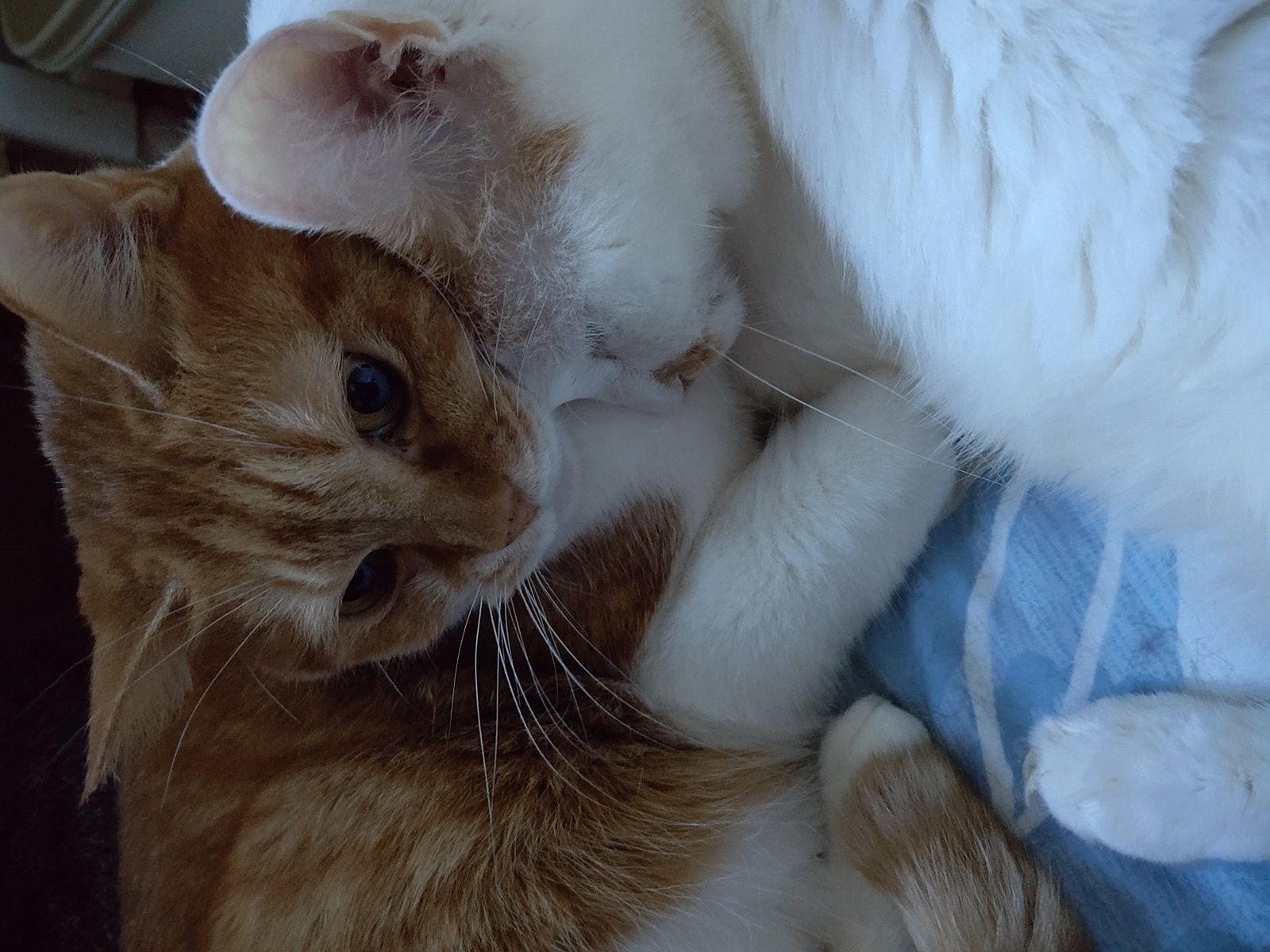 みなさまこんにちは。今、米が炊き上がるのを待っています。米はネットで買う方が安いし、更に玄米の方が安いので、専ら玄米です。たまに白米なんて食べると、あ~甘くて美味しい~✴️なんて感動します。けど、玄米もプチプチした食感が好きです。ひとつ玄米の難点は炊飯に時間がかかること。あー、早く炊けないかなー、と思いながらブログ書いてます。さてるみこちゃんの首の後ろの出来物のこと、書きっぱなしになってました、すみません😣💦⤵️先週まちくんと一緒に通院して、出来物に針を刺して細胞を採取して、病理検査に出しました。昨日、検査結果を聞いたところ、細胞からは悪い物質は確認出来なかったとのことで一安心です。まちくんもるみこちゃんも御飯食べて暖房のきいた暖かいお部屋でのんびりしてます。他のみんなもそれぞれ自由です、が、私は猫たちに囲まれて小さくなって寝返りも我慢して寝ています。けど、これって凄く幸せな事ですね、、、愛する猫たちが一緒に居る、猫の体温、一緒に居るから得られる幸せ、猫が、犬が、動いてる、食べてる、うんちして臭い、爪研ぎして襖を破壊した、ニャーニャーワンワンうるさい、その全てを感じて居られる今が幸せもちろん、私が猫たちや犬より長く生きなければならないのだけど、だから、その分、命を看取らなければならないのだけど、今までもそういう事があって、少なからず逃げてしまっていた所もあったと思います。まだ、私が居ないと生きていけない小さな可愛い命があります。今までの後悔や反省、僅かな経験を胸に、今を、今日を、明日を過ごしたいと思います。私の可愛いるみこちゃん~ランキング参加中~明日からまた仕事だ、ショボーン(´Д`)にほんブログ村