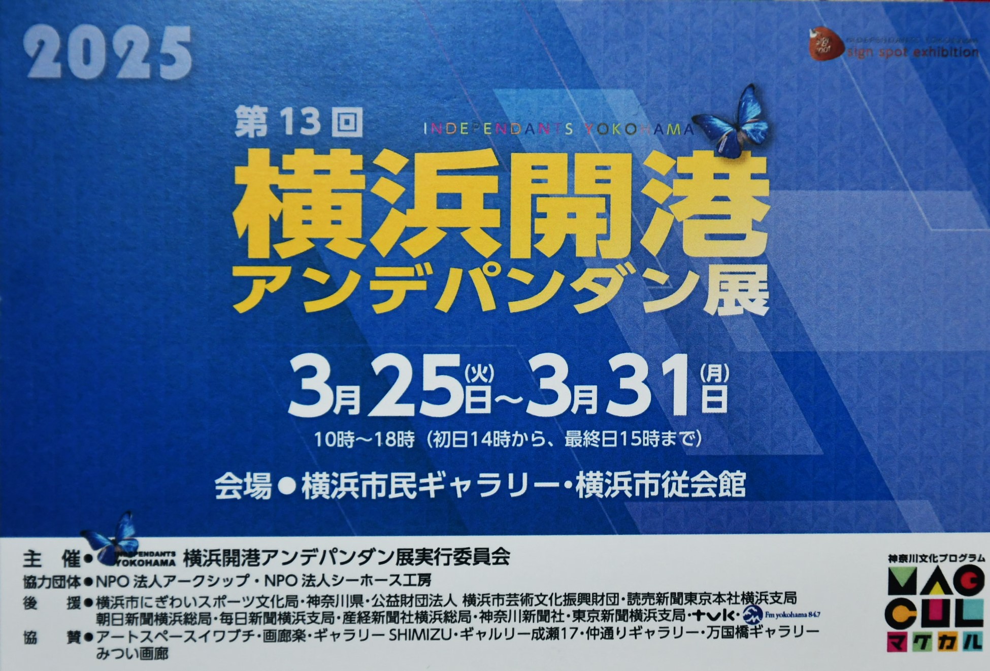 この二人も競演しますww今回、かつてのわたくしの先生、河野元昭茜先生が我々の主催展覧会に発表してくれることになりました。前代未聞の出来事です。美術史家と作家の競演。なんと素晴らしい事でしょう!日本美術の歴史を紐解く美術史家のひとりです。理論ではかないませんが、作風では勝っているかも?それこそ、何年か後に名を残しているかな・・・?ですね!どうでもいいことですが・・・ww左から河野さん、藤崎さん、わたくしです。横浜市民ギャラリー。2025年。