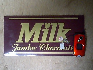 さぁてさてぇ。ってことで行ってきました新年会@横浜!さーむーかったーーーぁ><。いや、はい。いっちばん暖かい格好してましたが、うん。今回の参加者は11人。うちお初な方は2人。なんだかオフ会の度にクロノス仲間が増えてってますね。とか言いつつ、この11人のうち頻繁にログインしている人は2人という・・・。ええ、なんといいますか、クロノスオフ会を超えて単なる酔っぱらいの集まりになりつつあるような気がしますですw今回のオフも遠くからの参加の方々多数で、ほんとご苦労様です。いつものおっちゃんといつもの細っこいのは毎度の事としてwおかげで関西の会ってみたかった元気な御姉様と、ノリの良いネタ人様と楽しい時間を過ごせました♪ゆかりごちそうさまでした!今度はナツメ完食期待してますw遠くからありがとです!!飲み部門では梅酒星人が降臨しませんでしたので、新たな梅酒伝説も産まれることもなく、各地で実に滞りなく梅酒を堪能してましたw(自分は最後の方は腹いっぱいで入らなくなってましたが・・・)第2戦目のカラオケでは、しょっぱなからハイパーヒートな歌合戦がっ。てか、おっちゃんには敵いません、もーあれやられたら敵いませんwカラオケ中には某ピンクいお方も電話で降臨され、長々といろいろ語ってしまいました~。思っていた以上に真面目な方だったのでびっくり!(失礼)んでも、こちらが何も言っていないのに自分でピンクな事をアピールしてしまったあたり、やっぱりピンクい人なのだと認識b飲み・カラオケの他にもゲーセンで若い人がそつなくリズム系こなして「このゲーマーが・・・」とお誉めの言葉をみんなからもらっていたり、リズム系失敗した2人組(含自分)が居たり、UFOキャッチャーに投資してる方が居たり、「腹減ったー」の鶴の一声でラーメン食いに行ってつけ麺にやられたりする人が出たりしたあたりで、時間になりお先に失礼しました。えー、前回に引き続きお土産をゲットしました。名古屋からのゆかりの他にこんなのがっ!!端っこの携帯と比較してみましょう。でかすぎです、あきらかにでかすぎです。1000↑RM注ぎ込んでゲットしたUFOキャッチャーの商品ですwこういうデカ菓子ってこの頃良く見かけますよねぇ。見た目にも楽しくて大好きだったりします♪とは言え、見た目がでかくても大概は開けると小分けになってるので、食べたり分けやすかったりするのもまた良いところ。ええ、もちろん取ったら分けてもらうつもり満々で待ってましたとも!!んで、無事ゲットしたのを渡されたのでウキウキしながら開けてみたらっ。一枚板かーーーーーーーーーーーーいっ!!想定外の事態に大笑いしながらも、なんと丸々一枚お土産に頂いてしまいましたっ。でかいぞー、おかしいぞー、ありえないぞー♪いろんなデジカメに超満面の笑みでデカチョコ持ってる人が写った気がしますが、まぁ気のせいでしょう、うん。頭ぽこぽこされて背丈がちびっと縮んだり(多分)マフラーをしているばっかりに命の危険を感じたりしながらも、またもや可笑し楽しなオフ会を満喫しました。今回会った皆さん、お疲れさまでした。初めましてや、久しぶりな気がしないのが毎度すっごく楽しいです。みんなありがとう!幹事のお二人(で合ってるよねぇ?w)今回もありがとうでした!またぜひ誘ってくださいませぇ♪ほんと楽しかったです!!本日のその後事情1日経過してここまで消費しました。ちなみに実家ということもあり、親子3人での消費量となります、あしからず。この調子だと、すぐになくなりそうです・・・w