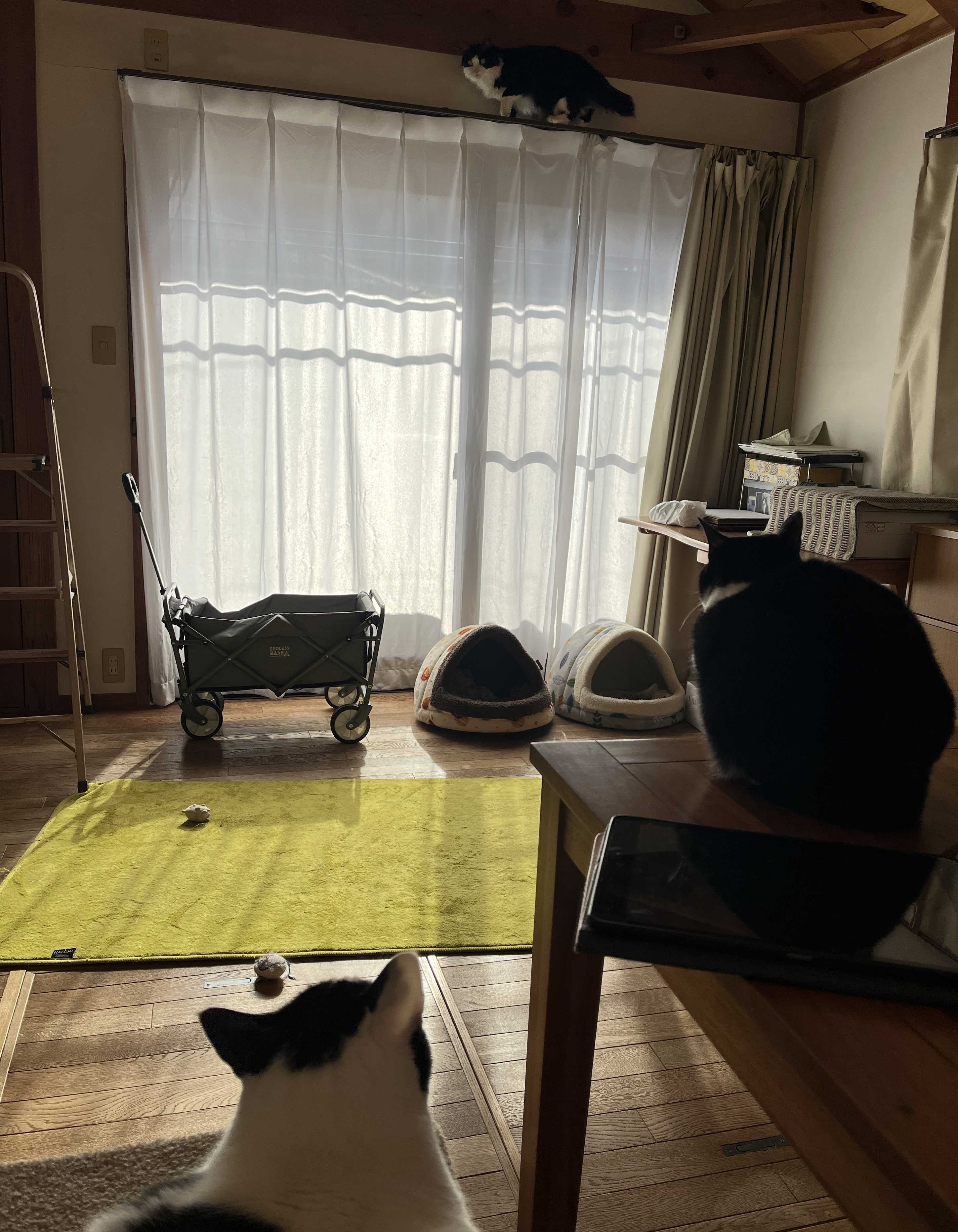久しぶりかな、ミキがカーテンレールに乗った。 カーテンをワシワシ掴んでよじ登ってい…