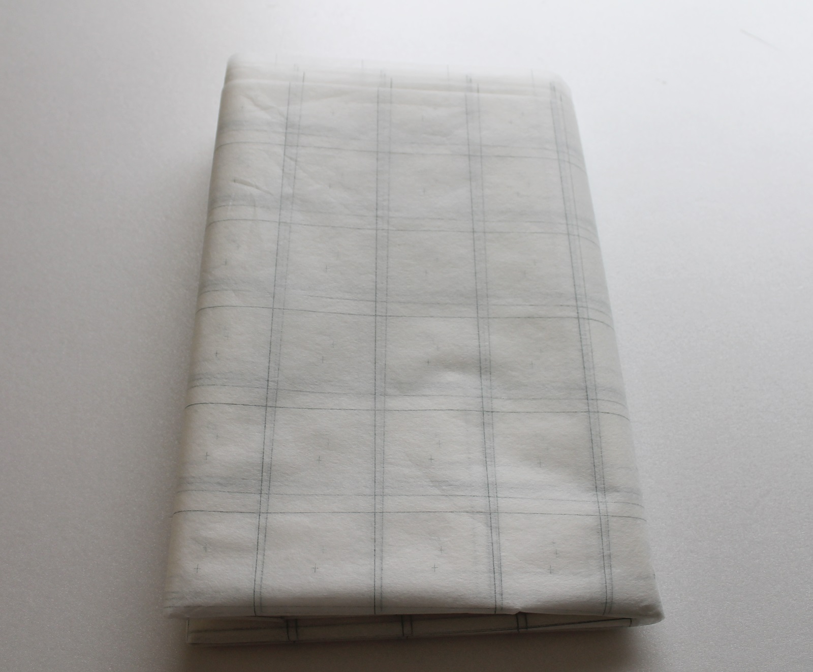 洋裁材料専門店Yoshimiさんで 5cm方眼 不織布を買いました。これでソーイングの型紙を写し取ります。一般には洋裁用のハトロン紙を使いますが ハトロン紙は一度たたんでしまうと 1.折りシワがひどく付いてしまう 2.破れやすい3.ガサガサ 音がにぎやかすぎる ことに使いにくさを感じて 私は不織布 を使用しています。不織布は1.シワになりにくい2.破れない(まち針も使えます)3.音がたたないので 型紙写しが快適です。で、今回はさらに 5cm × 5cm の方眼入りです。普段使っている 方眼の入っていない不織布よりも毛羽立ちが少なく より 「紙」 に近い質感です小さな サイズの数字まで はっきり 透けます透け具合は抜群です方眼を「地の目」に合わせると 布地の柄合わせにも重宝します。こちらは 方眼なしの不織布 ↓表面が毛羽立っているのか ぽこぽこして 数字が読めません方眼入り不織布は紙のような質感なので 鉛筆での書き込みもスムーズそして さらに 間違えても消せるんです ↑間違えたラインが 薄くなっているのが わかるかな?これくらい消えれば 十分なんです普段使っている 不織布は 間違えても 消せないので (^_^;)~使ってみた感想は~方眼を利用して スムーズに 写し取りができるのと紙のような質感で 鉛筆に引っかかることもなく きれいに書ける のが とても楽でした。さらに 小物の型紙を 作るとき、例えば ランチョンマット や クッションカバー など四角い型紙なら あっという間に できると思います。それから保管後の たたみシワも アイロンで きれいになりました。アイロンが掛けられる製図用紙 120cm幅×5m 【RCP】【HLS_DU】