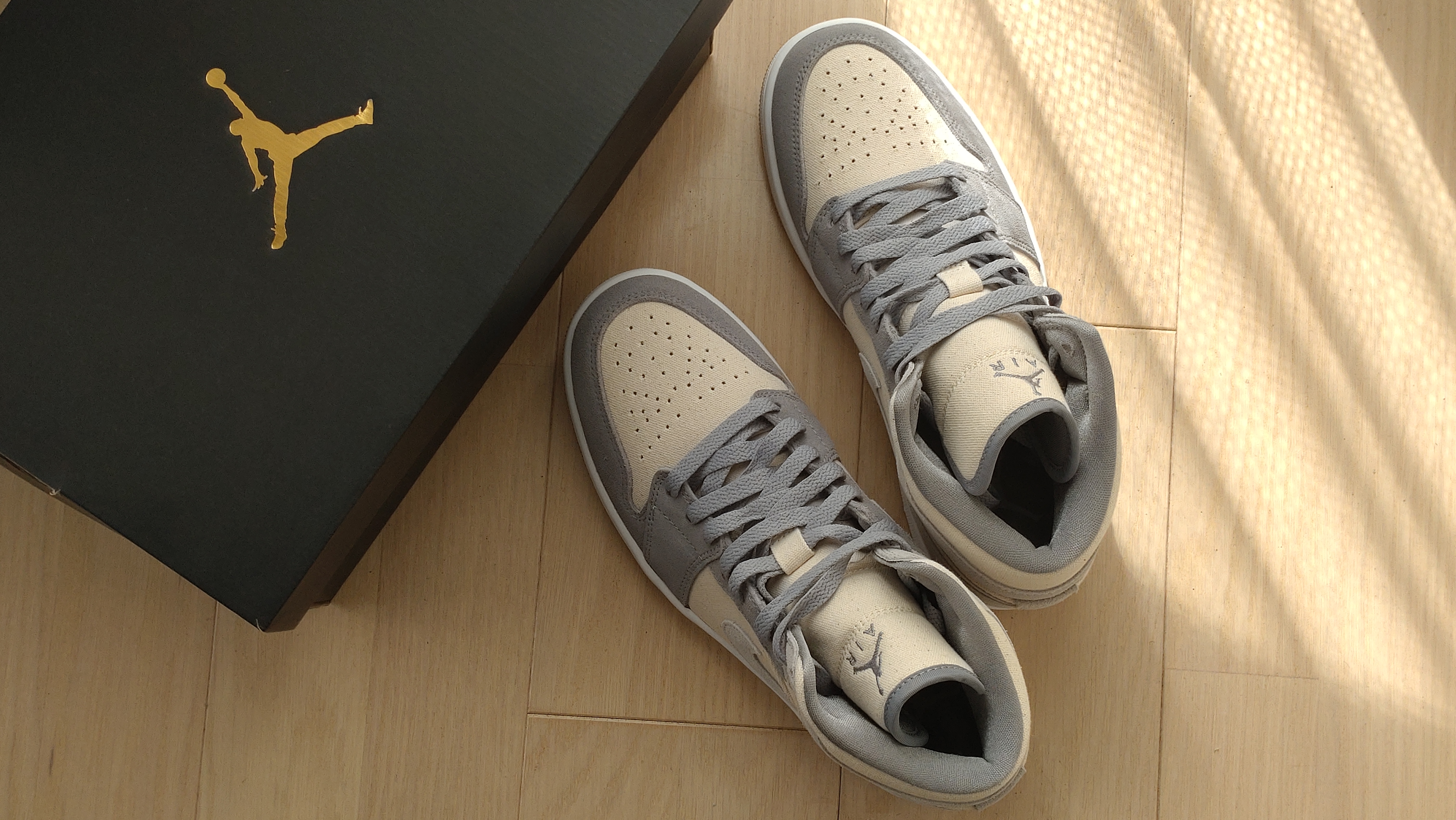 ※当サイトはアフィリエイト広告を利用していますこんにちは!ご訪問ありがとうございます(*´∀`*)今月はダンナの誕生日があったので、、、エアジョーダンをポチっとな。しかし、、お高い😂スニーカーはずっとオールスターのハイカットばっかりやったのに、数年前からジョーダンが欲しい!!と言うようになって・・・で、2年ぐらい前の誕生日やったかな??初めてジョーダンをプレゼント。わたし優しい!!←誰も言ってくれへんから自分で言うwそういやこれもめちゃお高かったような・・・ブルーがグレーが欲しい。と言っててね。普段欲しいモノとか全く言わへん人なので、よっぽど欲しいんやろなと(笑)で、履いてみたらめちゃめちゃ軽くて歩きやすい!とたいそう喜んでおりましてwwかなりお気に召したご様子で( *´艸`)今でも毎日ジョーダン履いておりますwなので、今年はグレーを買ってあげよう!!と。Air Jordan 1 Mid SE Cream GreyCreamはキャンバス、そしてGreyはスウェードになっててすごいかわいいです!!試しに履いてみたけど←お前が履くんかい私も欲しい!って思いました( *´艸`)これも迷ったー!!かわいいよね( *´艸`)でもでも!キャンバス地がかわいいしグレーも春らしくていい色かな~と♪気に入ってくれたようなので、これにしてよかったです^^あ、防水スプレー買わねば。。 新しいブログを始めました→https://sazanami.club/よろしければ、あそびに来てください♡Instagramも始めました→spica.224ROOMたまに更新してます。最後までお付き合いありがとうございます♡にほんブログ村